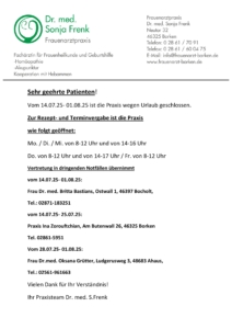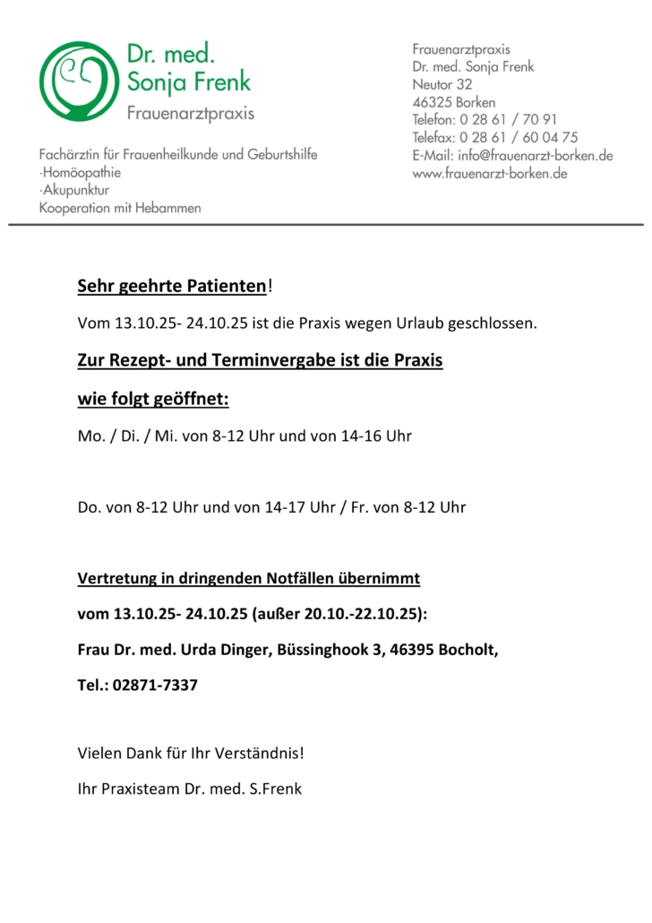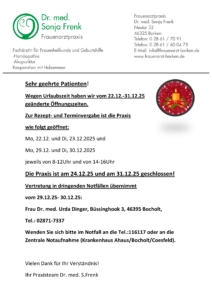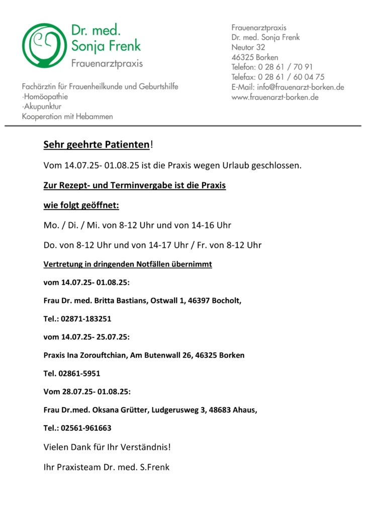 herzlich willkommen auf der Internetseite der Frauenarztpraxis Dr. med. Sonja Frenk in Borken.